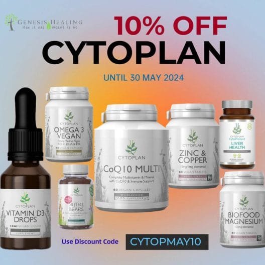 CYTOPMAY10 Nutri Bears Children’s Multi Vitamins, Vitamin D3 Drops, 50+ Wholefood Multivitamins, Vitamin B3 (Niacin), Pregna Plan, Cytoplan Zinc With Copper, Omega 3 A Powerful Vegan Supplement, Vitamin E Tocopherol & Tocotrienol Complex, Cyto-Night Powder Natural Source Melatonin, Biofood Magnesium, Adrenal Support, Vitamin D3 4000iu & K2, 5-HTP Plus, Methylfolate – Folic Acid as Methylfolate, Immunovite Beta 1-3 1-6 Glucan